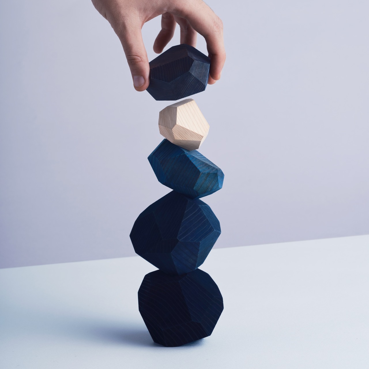 バランスと創造的感覚を養うための多面体の木製のブロック。積み上げたり、並べたり、飾ったり、使い手の想像を刺激するオブジェクトです。職人の手によって、ひとつひとつ異なるサイズ・形状に面取りし、一つのオブジェクトとしても整うように製作しています。素材の調達から検品に至るまで奈良県の吉野地方で行っています。